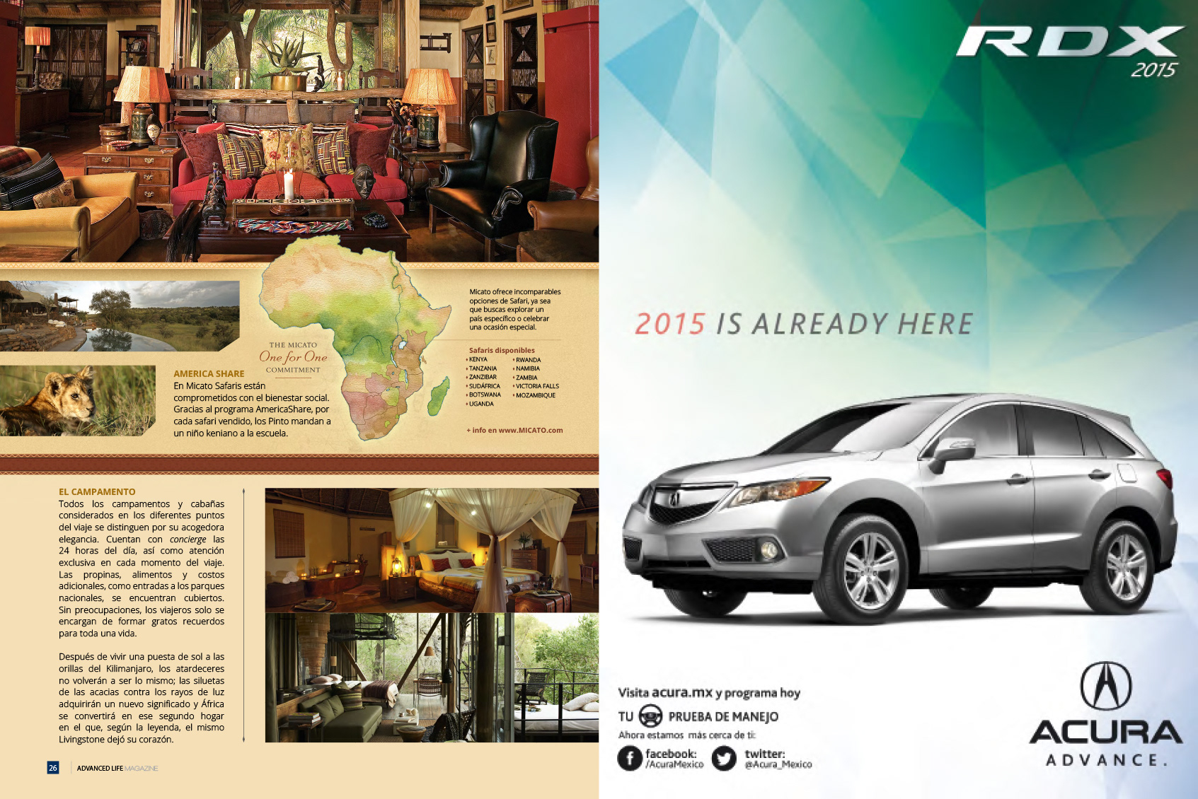 Diseño y diagramación de portada y artículo para "Advance Life" de Acura, México.