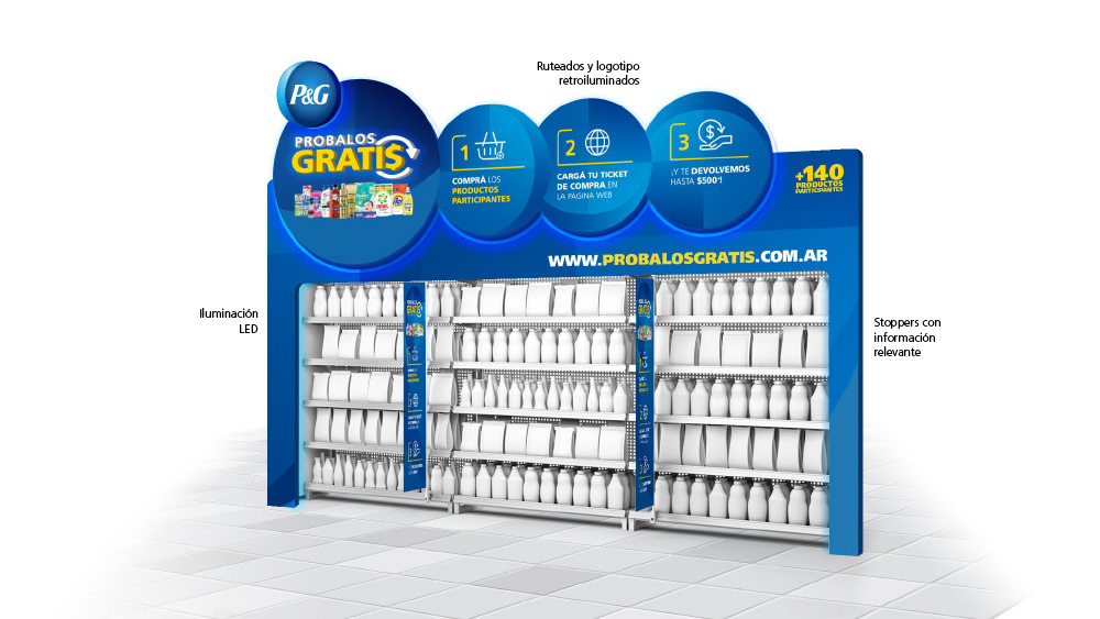 Exhibidores para promo Probalos Gratis P&G